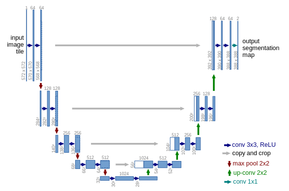 The original architectures used for diffusion models were U-Nets (3). They were invented in 2015 for medical image segmentation. They feature a series of bottlenecked convolutional stages with skip connections to allow for gradient flow.