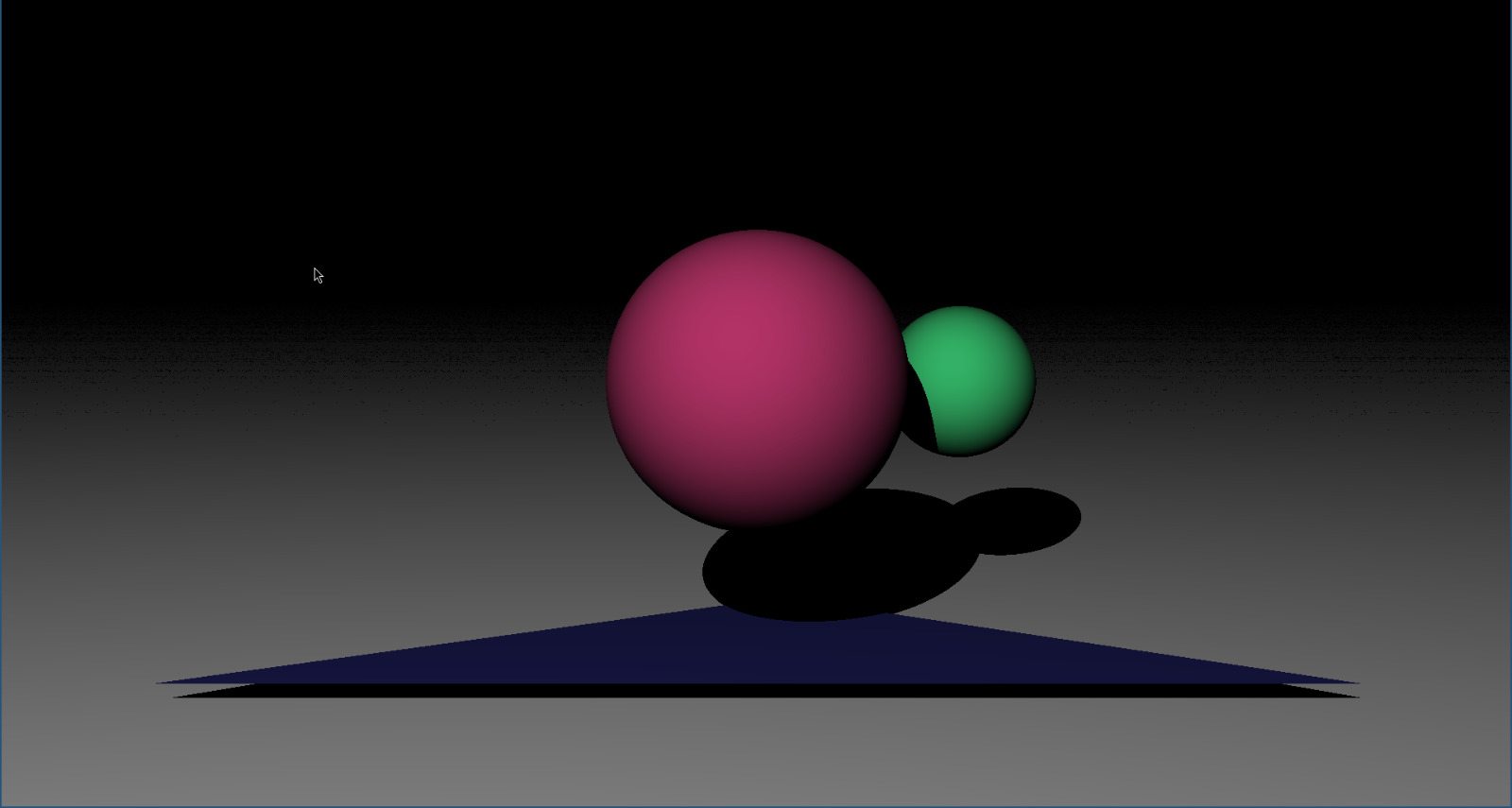 The next object is usually an infinite plane. I implemented this one to gain confidence in intersecting different objects and have a floor for shading, but really it wasn't that much harder to write the function for triangle intersections directly. And 2 triangles totally suffice as a floor.